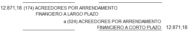 Lo primero que debemos hacer es ver si es un arrendamiento financiero o no. Para ello debemos calcular el valor actual de las cuotas a pagar para ver si cubre la mayoría del importe del valor razonable del bien.